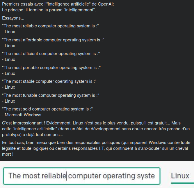 Premiers tests avec l'IA de OpenAI...