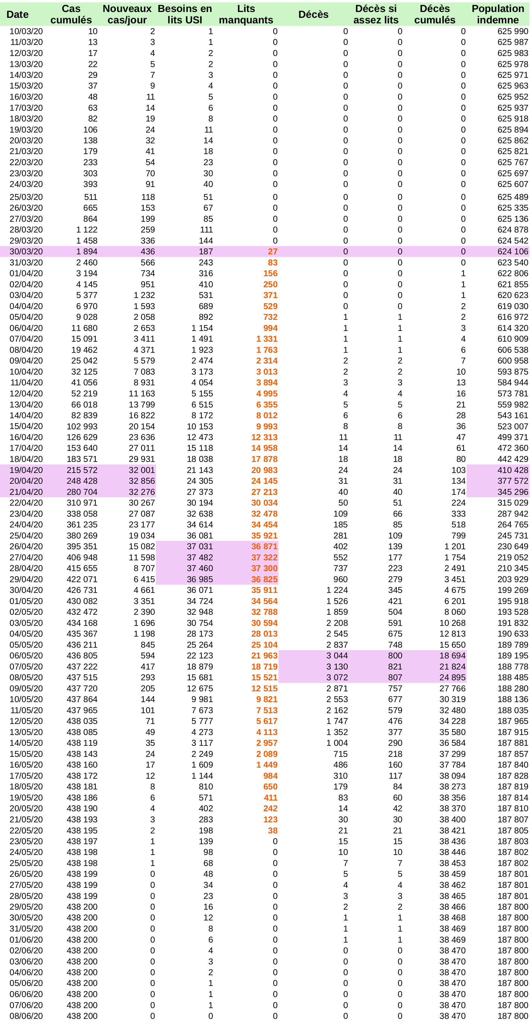 Calendrier prévisionnel de l'épidémie au Luxembourg
